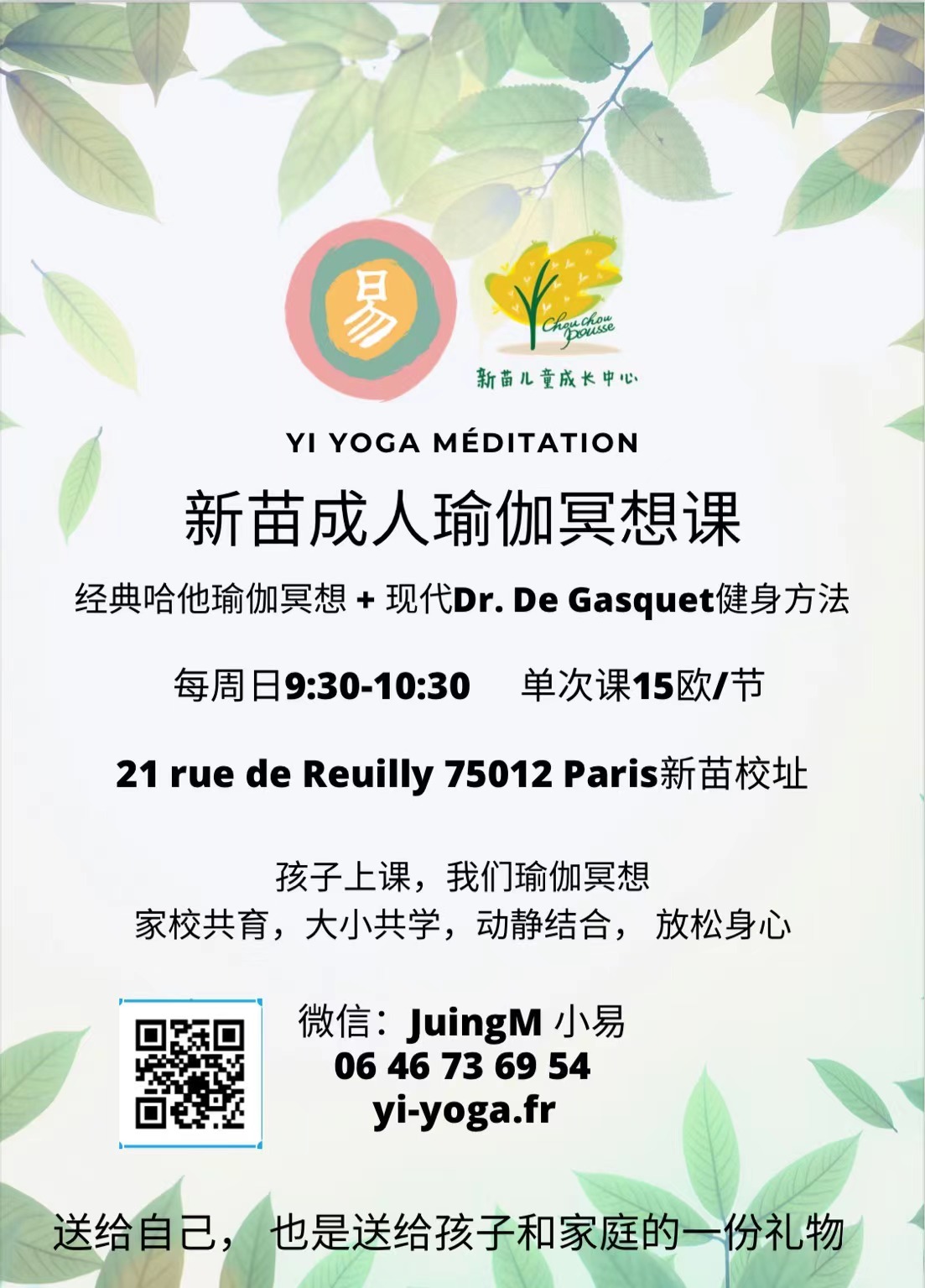 ・Yi Yoga Méditation Paris : 10 ans d’expérience d’enseignement à plein temps en cours hebdomadaires, ateliers et retraites, Paris 11ème.